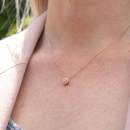 This floating diamond necklace is sure to make you stand out from the crowd with its 9ct rose gold, 12 0.20 point white diamonds and a pink diamond centrepiece that steals the show. The rose gold chain sneaks behind the setting, creating the illusion of floating diamonds. This is an excellent choice for those looking for their first floating diamond necklace.