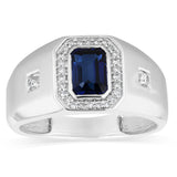 1.20ct Created Blue Sapphire and Luminesce Lab Grown 1/6 Carat Diamond Gents Ring in Sterling Silver