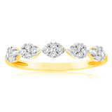 Add a timeless sparkle to your collection with this 9ct Yellow Gold 1/4 Carat Luminesce Lab Grown Diamond Dress Ring. Featuring 5 stunning clusters of lab-grown diamonds, this exquisite ring radiates brilliance while being set in warm 9ct yellow gold for a classic yet modern touch. This elegant piece is perfect for special occasions or as a luxurious everyday accessory. A true statement of sophistication, this ring is the perfect blend of innovation and timeless beauty.