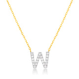 Luminesce Lab Diamond W Initial Pendant in 9ct Yellow Gold with Adjustable 45cm Chain
