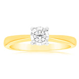 Introducing the Luminesce Lab Grown 1/10 Carat Diamond 4 Claw Ring in 9ct Yellow Gold, a dazzling blend of elegance and sophistication. Crafted with meticulous attention to detail, this exquisite ring features a stunning lab-grown diamond delicately held in place by four claws crafted from radiant 9ct yellow gold. The brilliance of the diamond is beautifully accentuated by the warm glow of the gold setting, creating a mesmerising sparkle that catches the eye. Whether worn as an engagement ring, anniversary gift, or a symbol of self-love, this Luminesce masterpiece is sure to captivate hearts with its timeless beauty and refined charm. Elevate your style and celebrate life's precious moments with the Luminesce Lab Grown 1/10 Carat Diamond 4 Claw Ring in 9ct Yellow Gold.