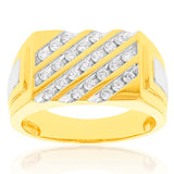Make a statement in this 1/2 Carat Lab Grown Diamond Gents ring. 23 Lab Grown Diamonds set into a tablet design and a 9 carat yellow gold band highlighted with rodium plating for a point of difference. Lab Grown Diamonds are quickly increasing in popularity as not only do they offer a bigger, better and brighter Diamond for less, they are also the most environmentally friendly choice when selecting your next diamond.