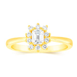 Luminesce Lab Grown 1/2 Carat Diamond Halo Solitaire Ring with Emerald Center Diamond in 9ct Yellow Gold