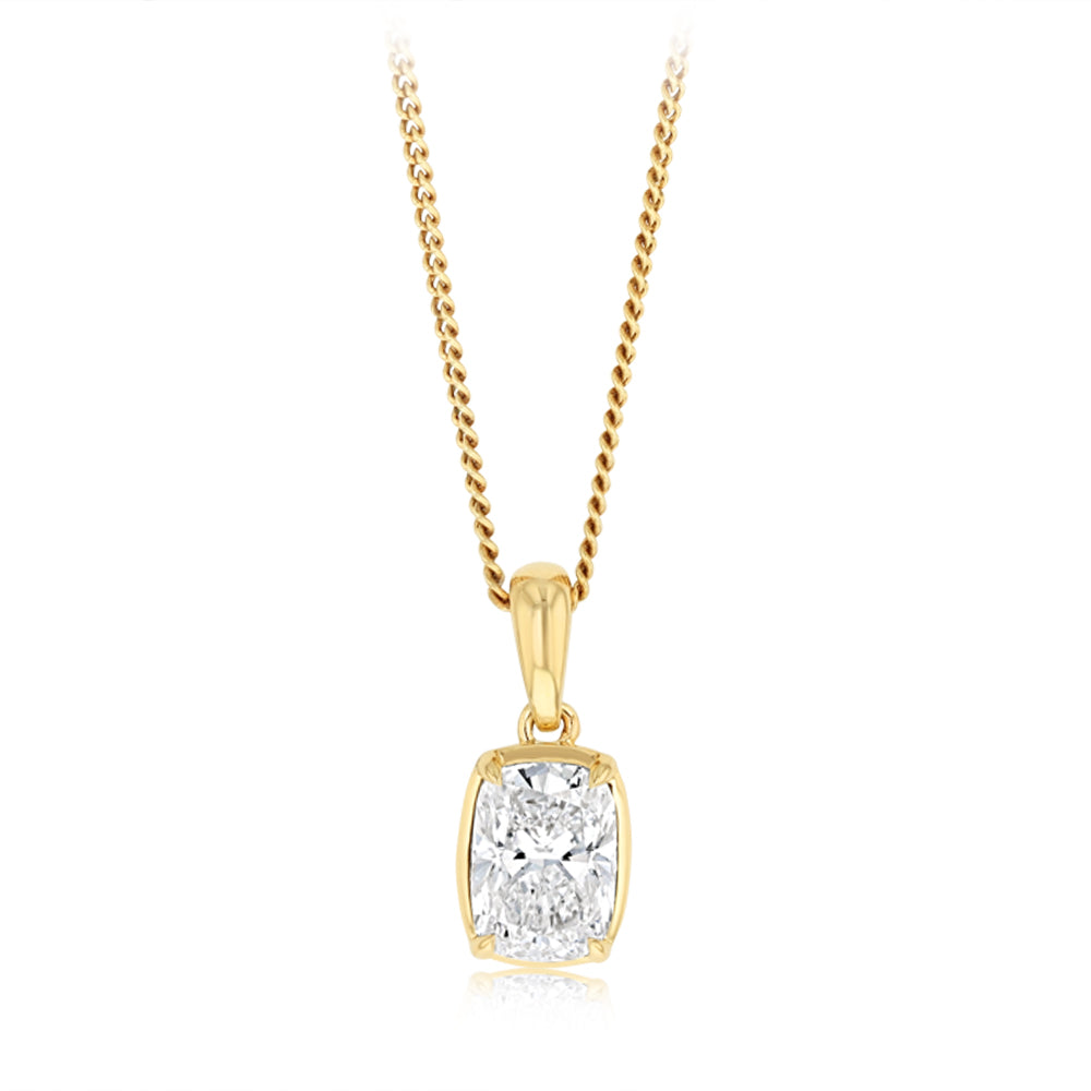 Luminesce Lab Grown 1 Carat Cushion Cut Diamond Solitaire Pendant in 9ct Yellow Gold