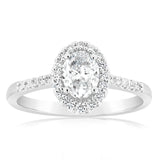 Elevate your style with the Luminesce Lab Grown 18ct White Gold 1 Carat Diamond Oval Halo Ring with 0.70 Carat Centre. This exquisite ring features a dazzling oval-cut diamond with GH colour and SI/P1 clarity, set in luxurious 18ct white gold. A truly sophisticated and captivating piece, perfect for those who appreciate the allure of fine jewellery.