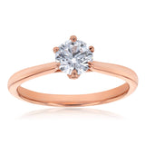 This ring features a stunning 1-carat Luminesce lab-grown brilliant cut diamond that has been set into luxurious 14-carat rose gold, which compliments the diamond adding warmth and radiance to its already dazzling look. The diamond was cut with expert precision into the classic brilliant shape, which was designed to catch the light and shine from every angle. Make your commitment to that special someone in your life even more significant with this brilliant ring.