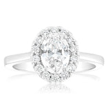 Experience sheer elegance with the Luminesce Lab Grown 18ct White Gold 1.3 Carat Diamond Oval Halo Ring with 1 Carat Centre diamond. This exquisite ring showcases a stunning oval-cut diamond in opulent 18ct white gold, embodying timeless sophistication and grace.
