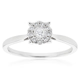 Radiate elegance and sophistication with the Luminesce Lab Grown Diamond 0.15 Carat Cluster Dress Ring in 9ct White Gold. This exquisite ring features a dazzling cluster of lab-grown diamonds, meticulously arranged in a captivating design. The diamonds shimmer and sparkle with unmatched brilliance, creating a stunning focal point. Set in a sleek and lustrous 9ct white gold band, this dress ring exudes a timeless charm and grace. Whether worn for a special occasion or to elevate your everyday style, this ring is a testament to refined beauty and impeccable craftsmanship. Embrace the allure of the Luminesce Lab Grown Diamond .15 Carat Cluster Dress Ring and make a statement of sophistication that will be admired by all.