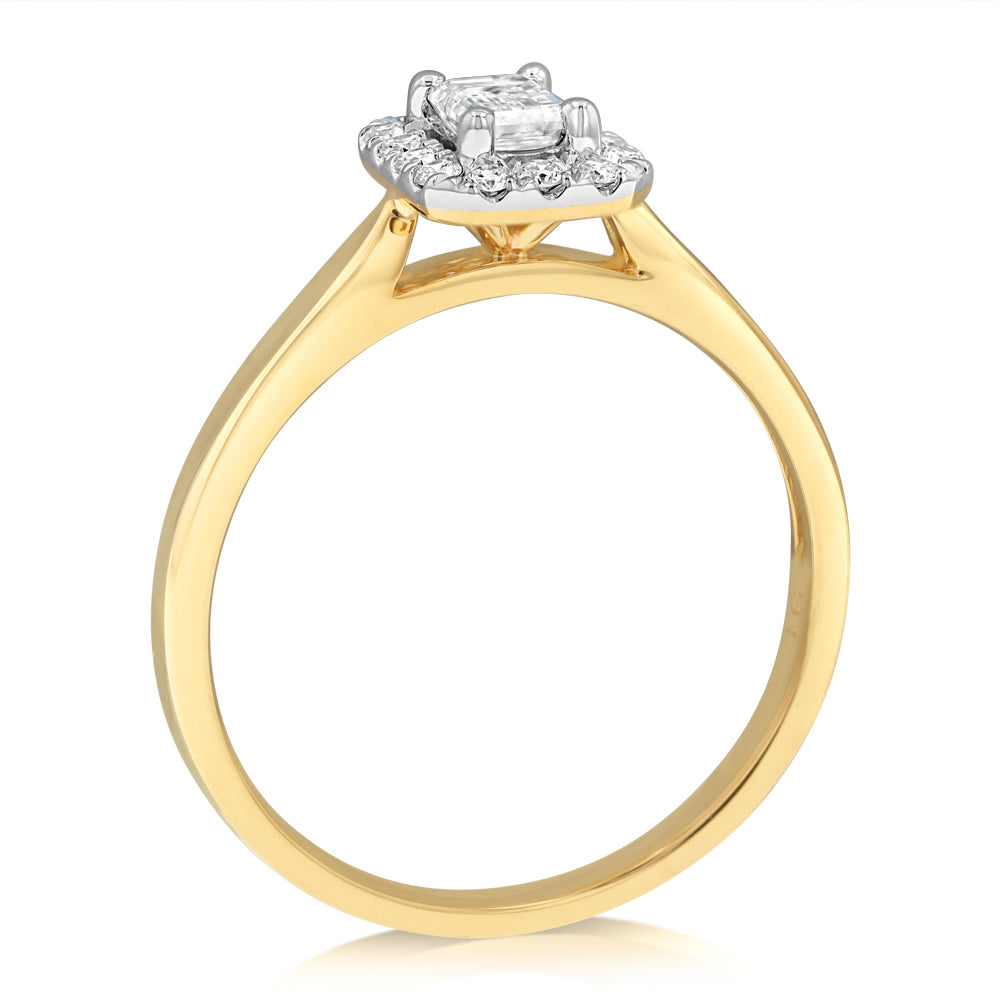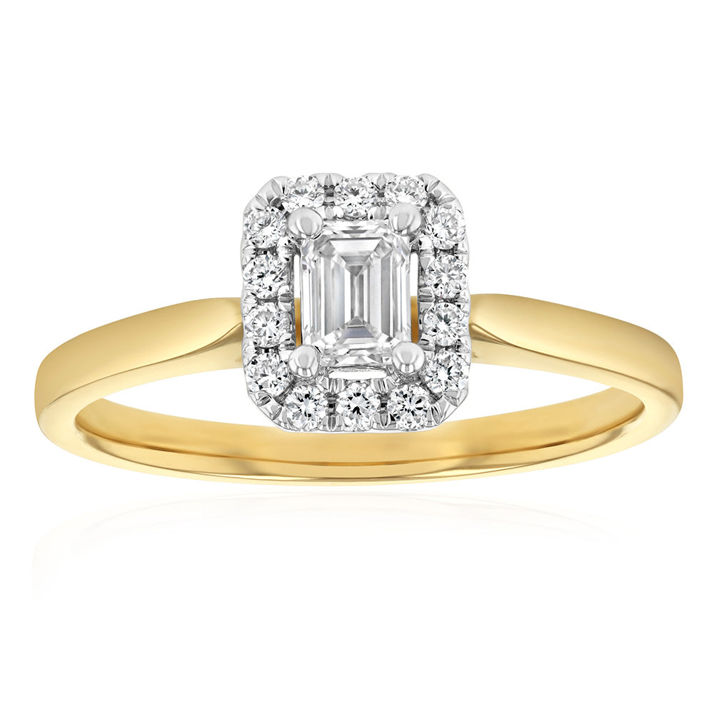 Luminesce Lab Grown 9ct yellow Gold 0.40 Carat Halo Emerald Brilliant Cut Ring