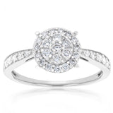 Make a bold and glamorous statement with the Luminesce Lab Grown Diamond 1/2 Carat Cluster Dress Ring in 9ct White Gold. This stunning ring boasts a dazzling cluster of lab-grown diamonds, totaling 1/2 carat in weight, meticulously arranged in a breathtaking design. The brilliant diamonds capture the light from every angle, creating a mesmerising display of sparkle and brilliance. The sleek and elegant 9ct white gold setting beautifully complements the diamonds, adding a touch of sophistication and luxury. This dress ring is the perfect accessory to elevate any formal ensemble or add a touch of glamour to your everyday style. Immerse yourself in the enchanting allure of the Luminesce Lab Grown Diamond 1/2 Carat Cluster Dress Ring, a true embodiment of elegance and opulence.