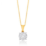 Enhance your neckline with the Luminesce Lab Grown Diamond 1/4 Carat Cluster Pendant in 9ct Yellow Gold. This exquisite pendant showcases a captivating cluster of lab-grown diamonds, totaling 1/4 carat in weight, meticulously set in a radiant 9ct yellow gold frame. The arrangement of diamonds creates a mesmerising display of brilliance and sparkle, illuminating any outfit with elegance and grace. Paired with a delicate chain, this pendant is ready to be worn and cherished. Crafted with impeccable attention to detail, the Luminesce Lab Grown Diamond 1/4 Carat Cluster Pendant combines timeless design. Elevate your style and adorn yourself with this enchanting pendant, a symbol of refined beauty and conscious luxury.