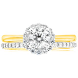 Celebrate forever with this Luminesce Lab Grown Diamond 1 Carat Bridal Set in Halo Design set in 18ct Yellow Gold. This stunning set features a brilliant 1 carat lab grown diamond centre stone surrounded by a halo of sparkling accents, paired with a perfectly matched band for added radiance. The warm glow of 18ct yellow gold enhances the brilliance of the diamonds, creating a timeless look full of elegance and meaning. Designed to symbolise lasting love, this bridal set blends modern innovation with classic beauty.