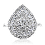 A showstopping piece for those who like to stand out. With a total of 1 Carat of Luminesce Lab Grown Diamonds, this silver pear shaped ring is adorned with 112 individual Brilliant Cut diamonds to ensure the sparkle is eye catching. Luminesce Lab Grown Diamonds are quickly increasing in popularity as not only do they offer a bigger, better and brighter Diamond for less, they are also the most environmentally friendly choice when selecting your next diamond.