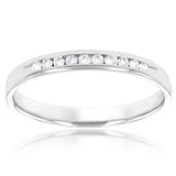 This eternity ring features a stunning 9 carat white gold setting with the front side being set with 1/8 Carat lab-grown brilliant cut diamonds. Eternity rings are perfect for pairing with your engagement ring and are a great way to show your eternal love for someone. This ring's 9 carat white gold perfectly complements the clear sparkle of the brilliant cut diamonds as they catch the light from every angle. Lab-grown diamonds are a growing trend thanks to their identical look to mined diamonds and their more affordable prices.