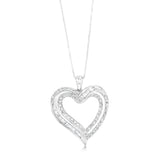 Luminesce Lab Grown Heart Pendant in 1 Carat Diamond & Baguettes with Silver Slider Chain