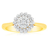 This ring features a distinct cluster style that offers an elegant look. The luxurious 9-carat yellow gold band lets the lab-grown brilliant cut diamonds be the star of the show. What’s so great about lab-grown diamonds is that they are identical to mined diamonds but come at a more affordable price and are better for the environment. If you’re looking to add a brilliant sparkle to your everyday style. Mark a significant moment with a loved one, or treat yourself to something special with this stunning ring.