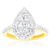 This on trend, Pear shaped Ring in absolutley stunning. 1 Carat of Luminesce Lab Grown Diamonds that sparkle from every angle. Set in 9ct Yellow Gold, you will love this ring for years to come. Luminesce Lab Grown Diamonds are quickly increasing in popularity as not only do they offer a bigger, better and brighter Diamond for less, they are also the most ethical choice when selecting your next diamond.